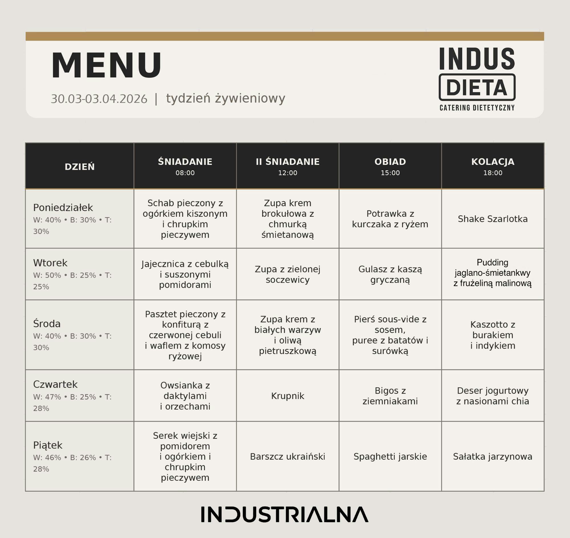 W INDUSdiecie tworzymy posiłki dla osób, które chcą jeść wygodnie, smacznie i bardziej świadomie. Nasza oferta została przygotowana tak, aby odpowiadać na różne potrzeby - od redukcji masy ciała, przez zwiększoną podaż białka, aż po codzienny pełnowartościowy obiad.